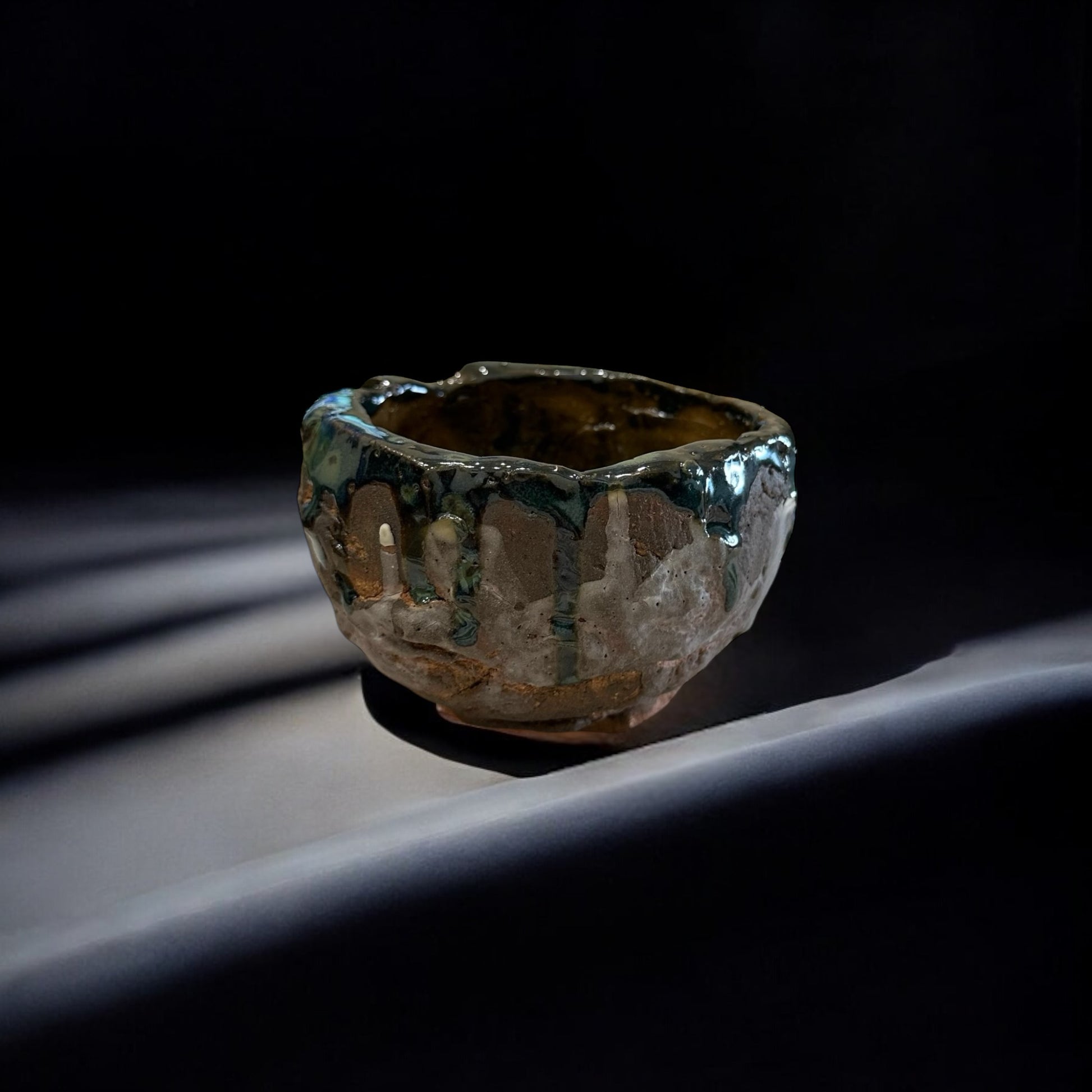 綠釉之雲以手作的粗獷美感呈現自然山水的意象。深沉的釉色中點綴著綠意與土色,彷彿映照著曠野與湖泊交織的景致,完美捕捉大地的靈氣與沉穩。