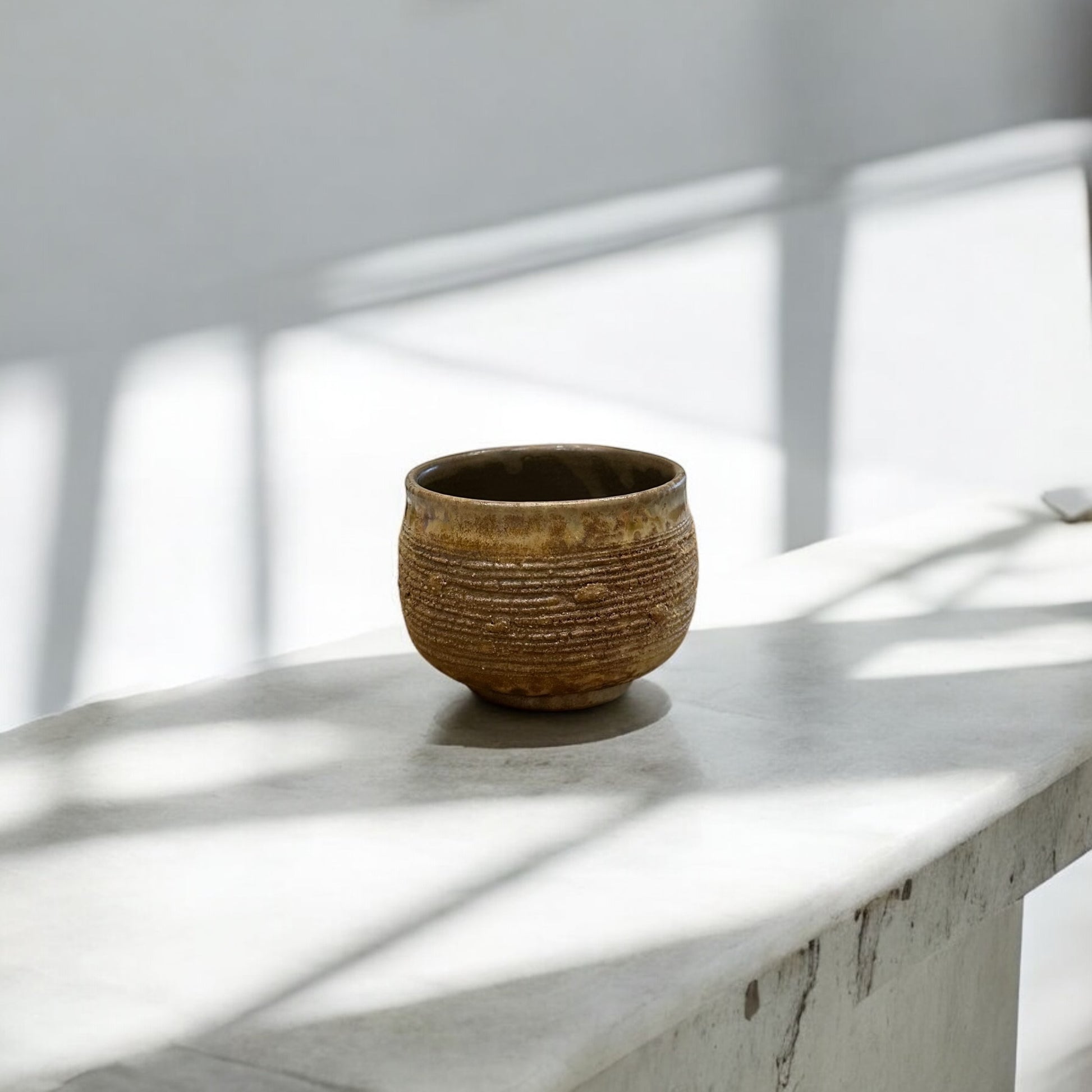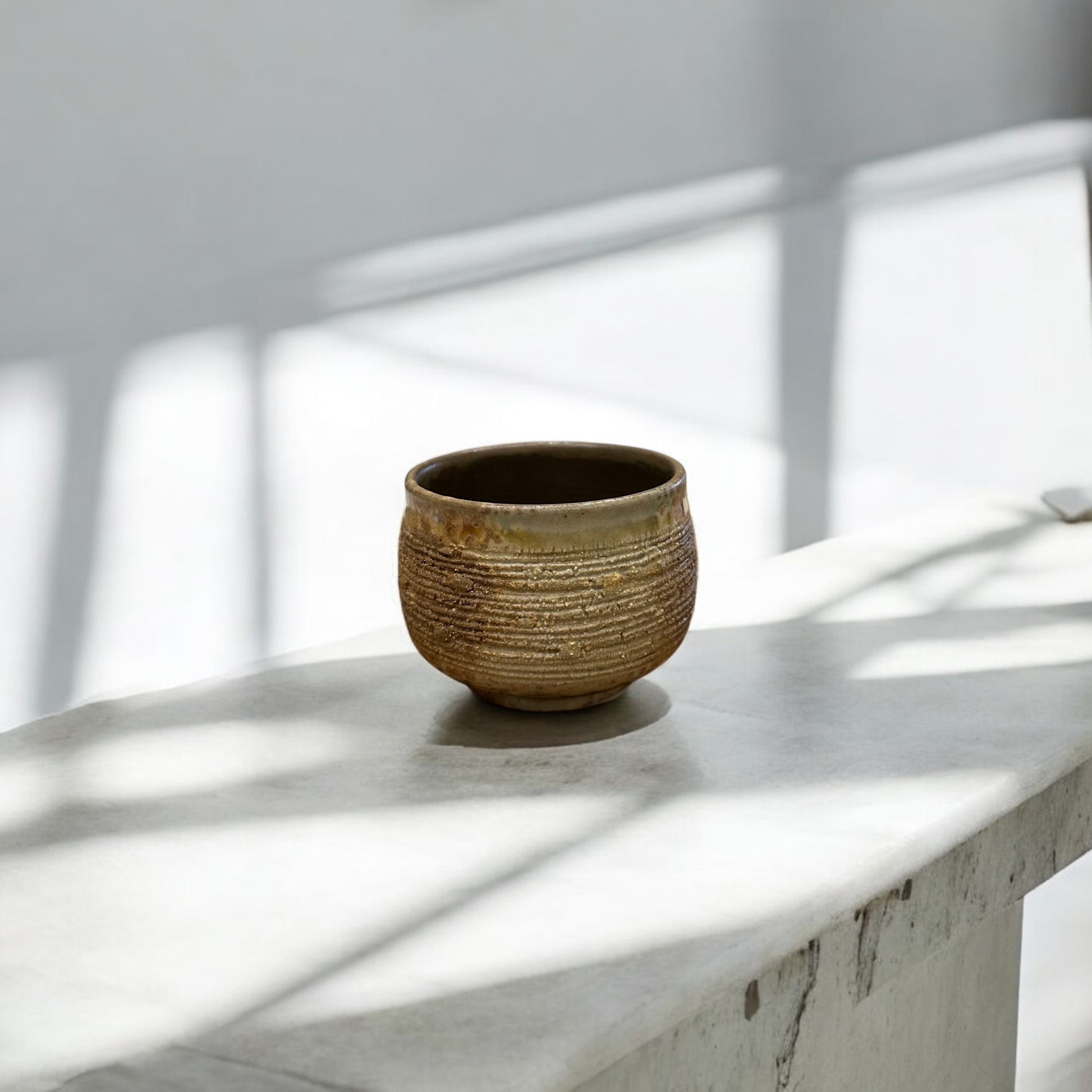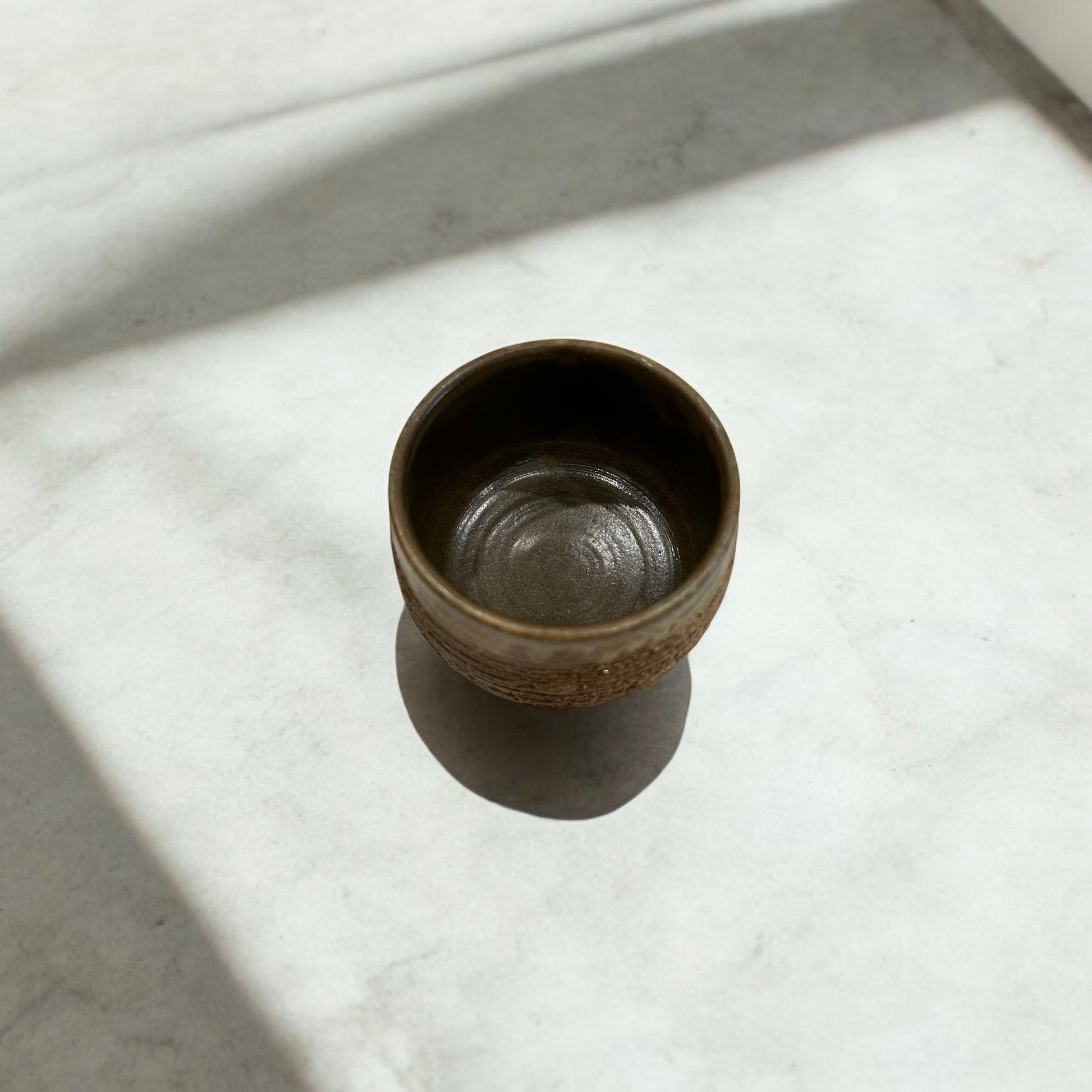 《 添興窯 》 樟樹紋手工竹炭陶杯 咖啡金