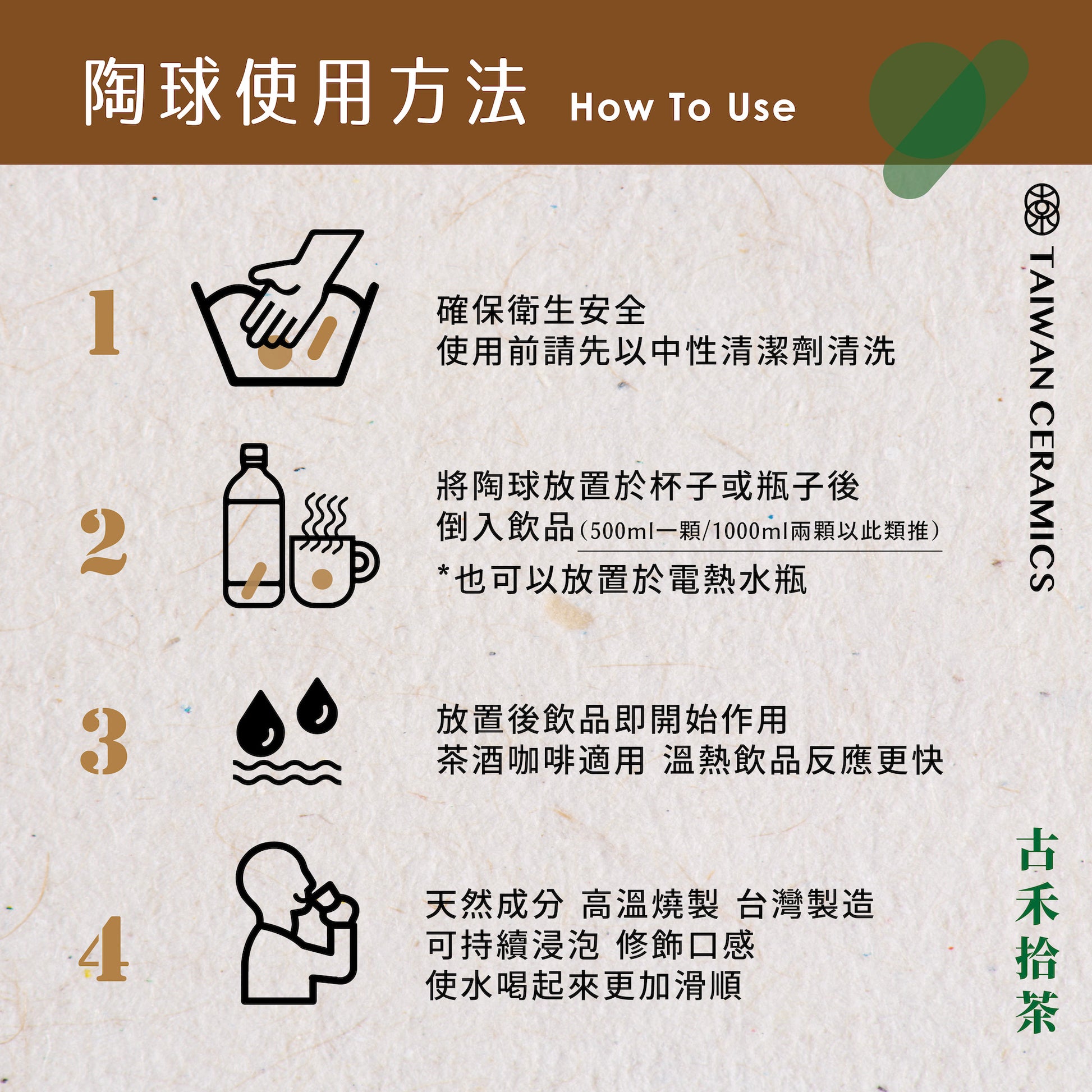 日常使用可將陶球放進水杯,水壺,或者直接置入飲水機中,亦適用魚缸及盆栽。