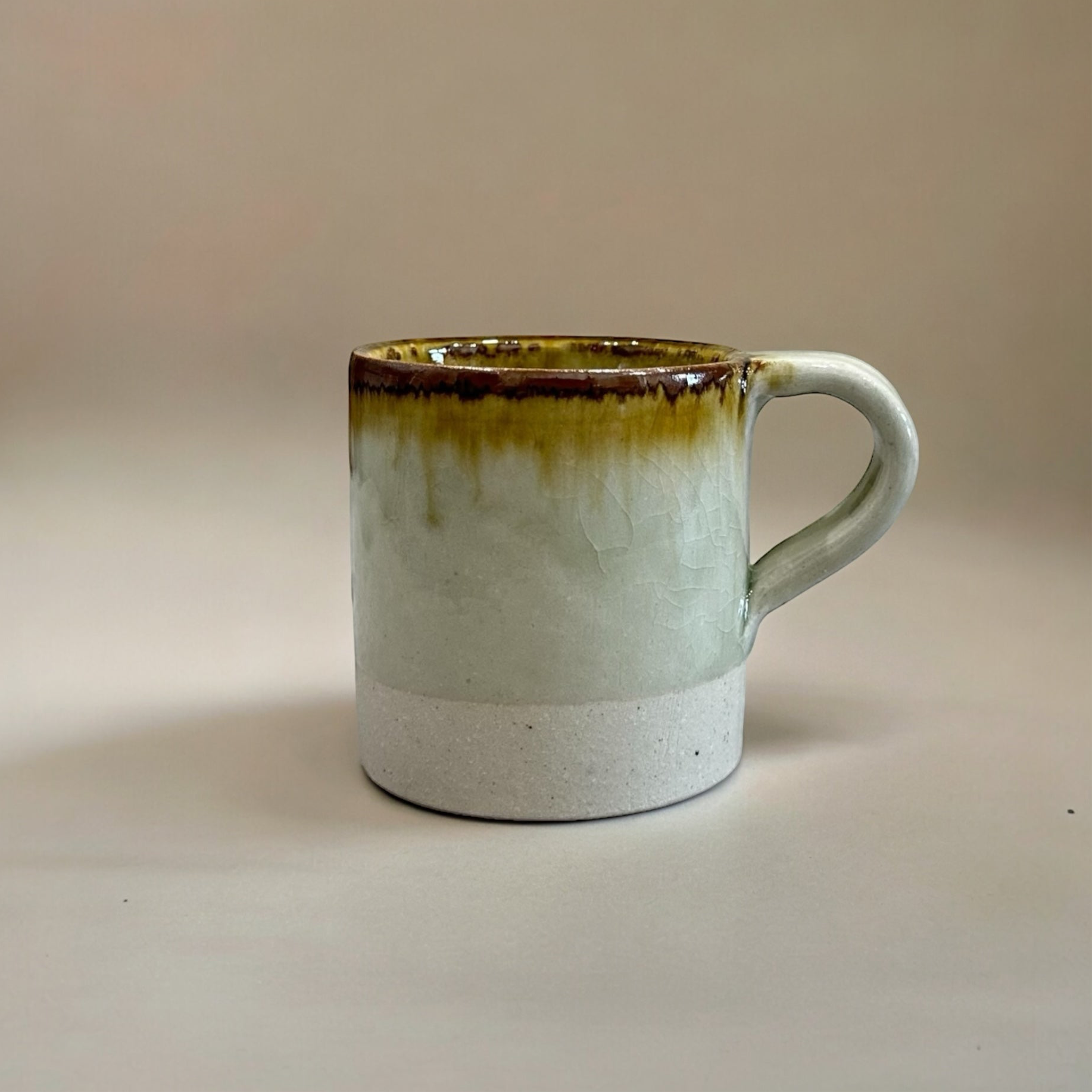 《 日本製陶 》 雙色馬克杯 綠褐結晶