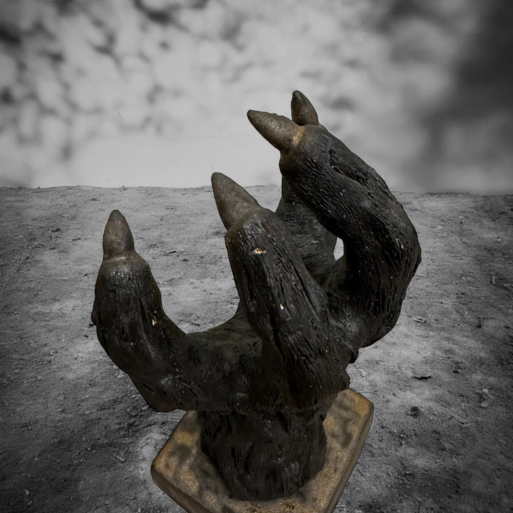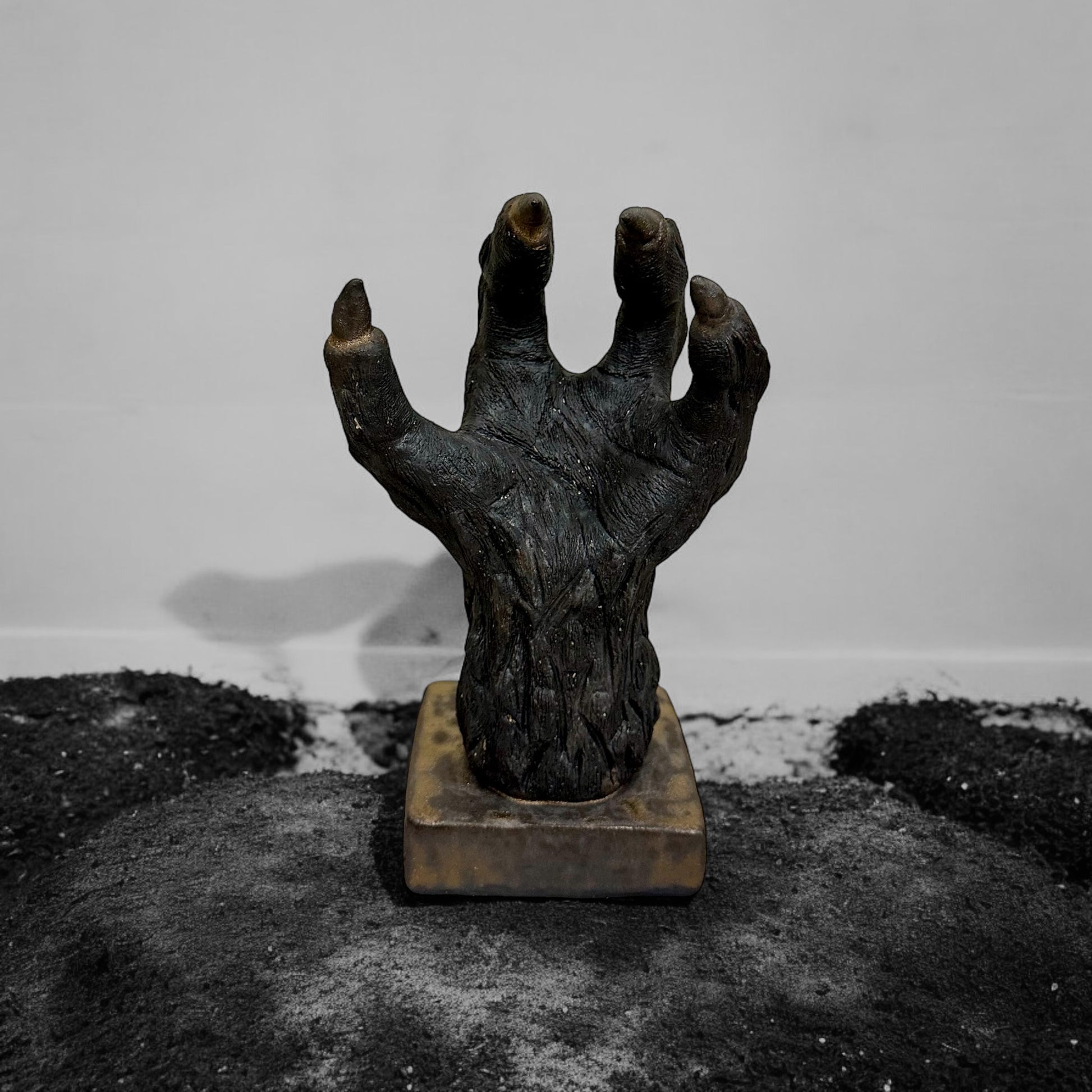 像是哥吉拉的陶怪物之手,是一件充滿個性與震撼的藝術品。它獨特的外型和深邃的紋理,給人一種神秘而令人不安的氛圍。從土地中伸出的巨大手掌,似乎隱含著無數的故事與未知的力量,為您的空間增添一絲魔幻與詭譎的氣息。