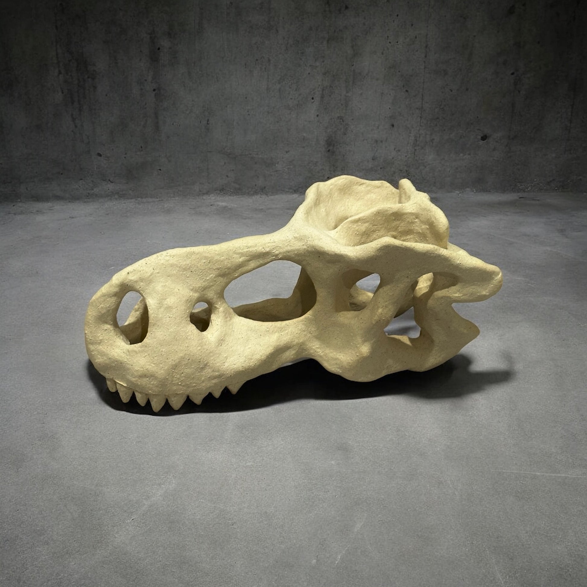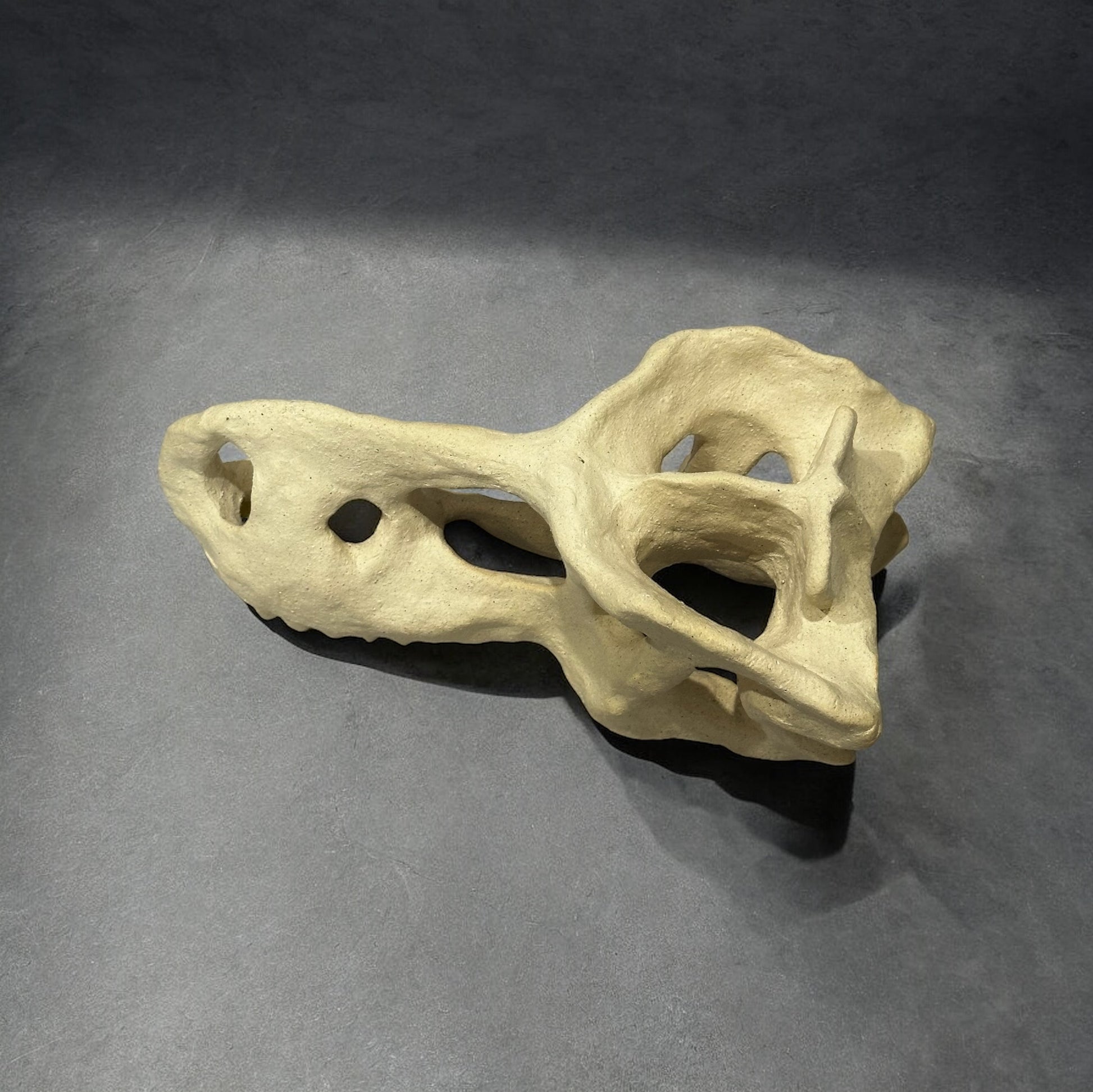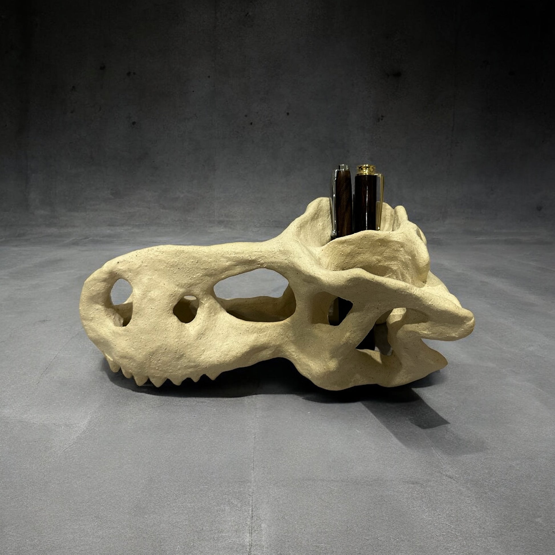 陶製恐龍雕塑呈現出一具恐龍頭骨的形態,細緻地捕捉了骨骼的線條與結構,使其栩栩如生。雕塑表面經過精心打磨,展現出自然的質樸與溫暖,彷彿時光的印記在此凝結。擺放於任何空間中,這件雕塑都能成為引人注目的焦點,喚起人們對史前生物的無限想像。