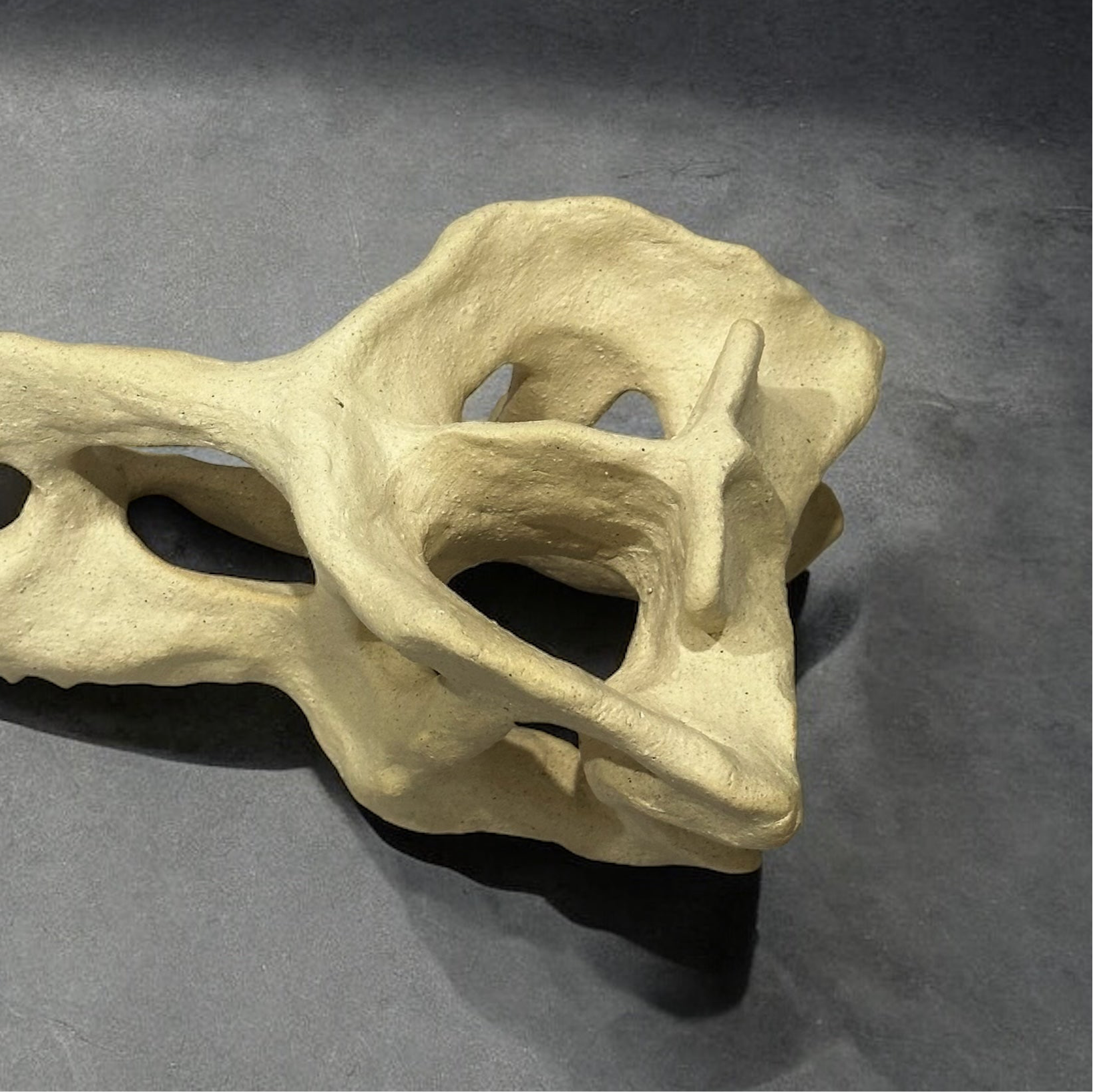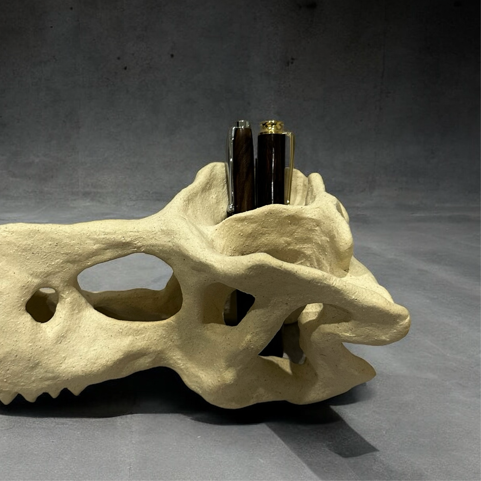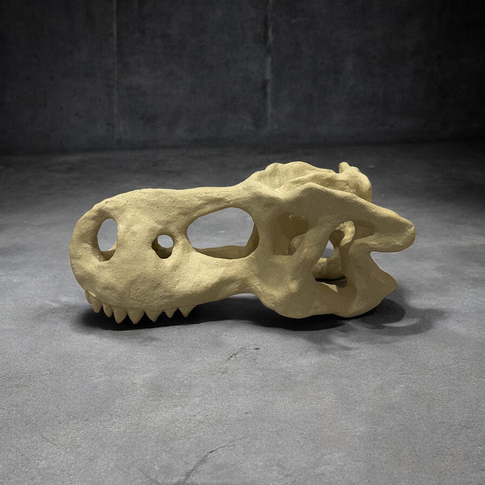 陶製恐龍雕塑呈現出一具恐龍頭骨的形態,細緻地捕捉了骨骼的線條與結構,使其栩栩如生。雕塑表面經過精心打磨,展現出自然的質樸與溫暖,彷彿時光的印記在此凝結。擺放於任何空間中,這件雕塑都能成為引人注目的焦點,喚起人們對史前生物的無限想像。