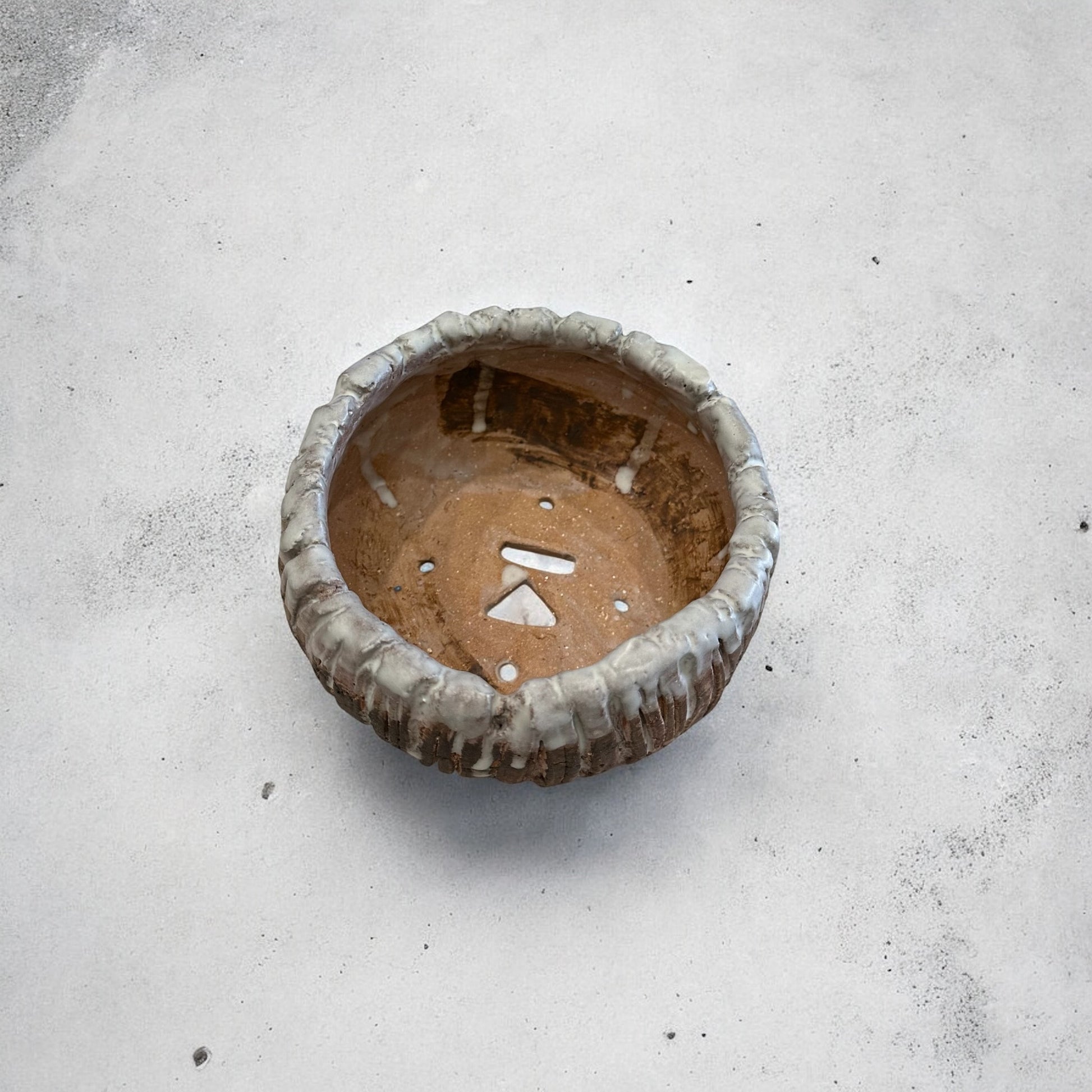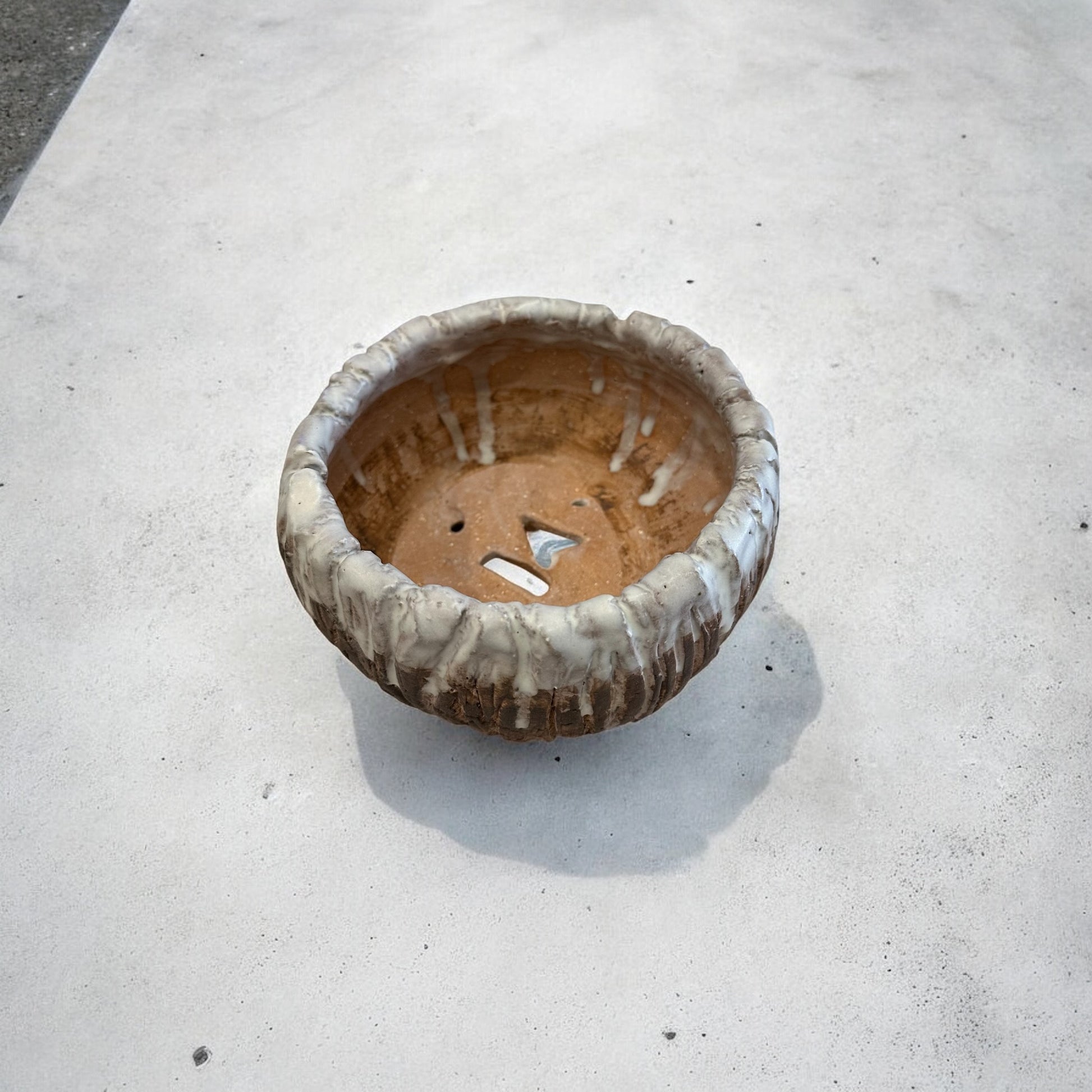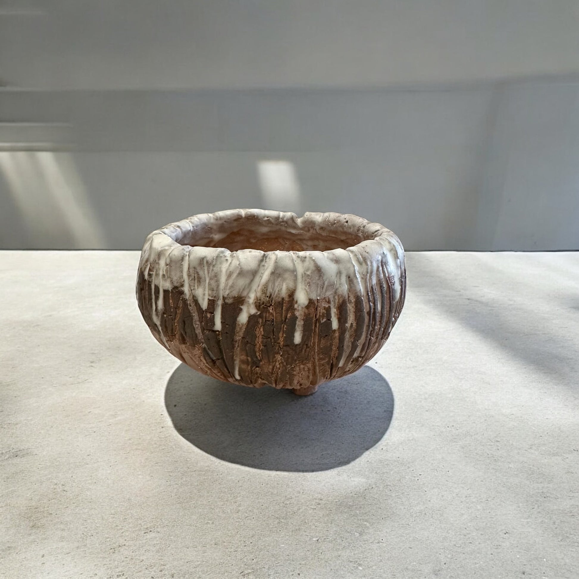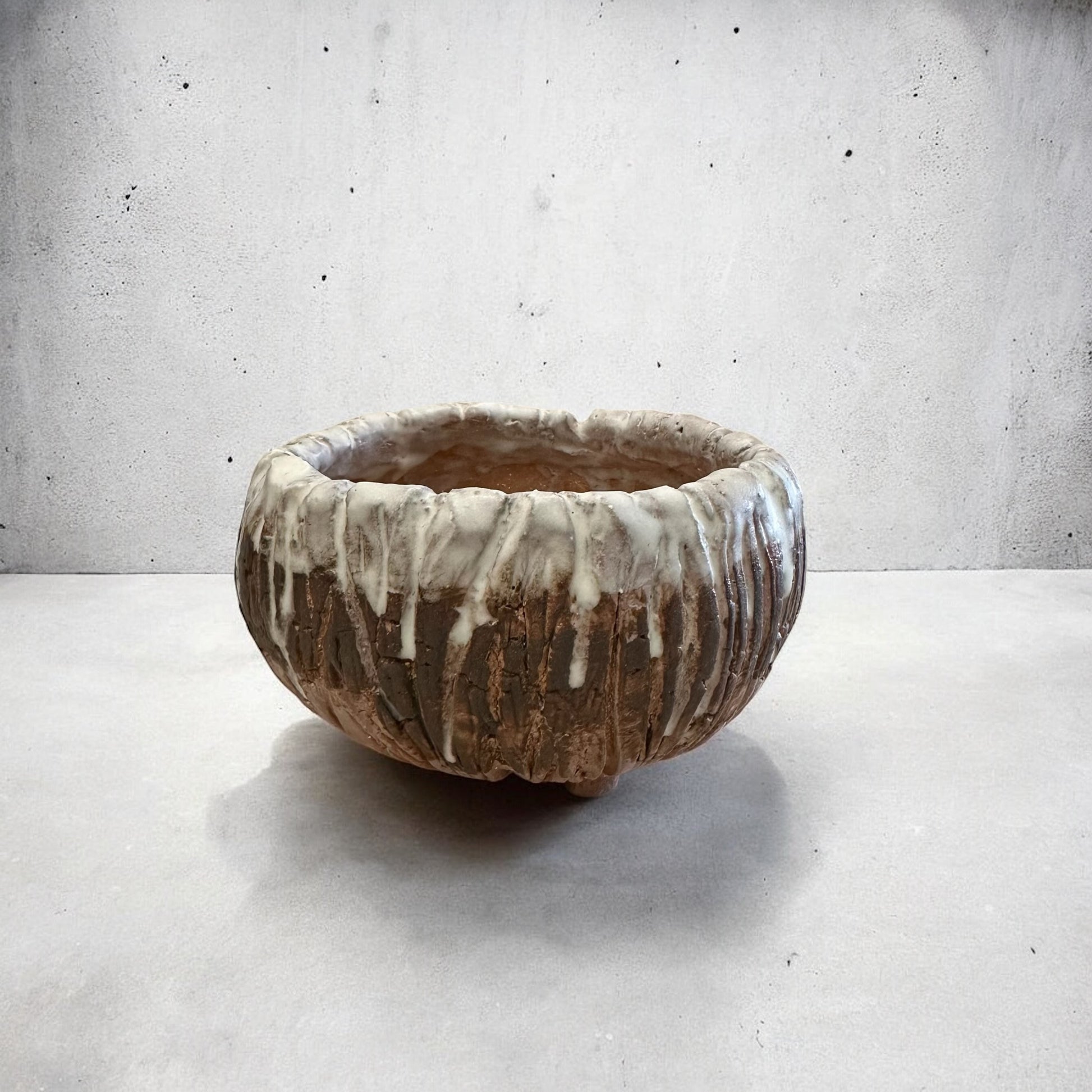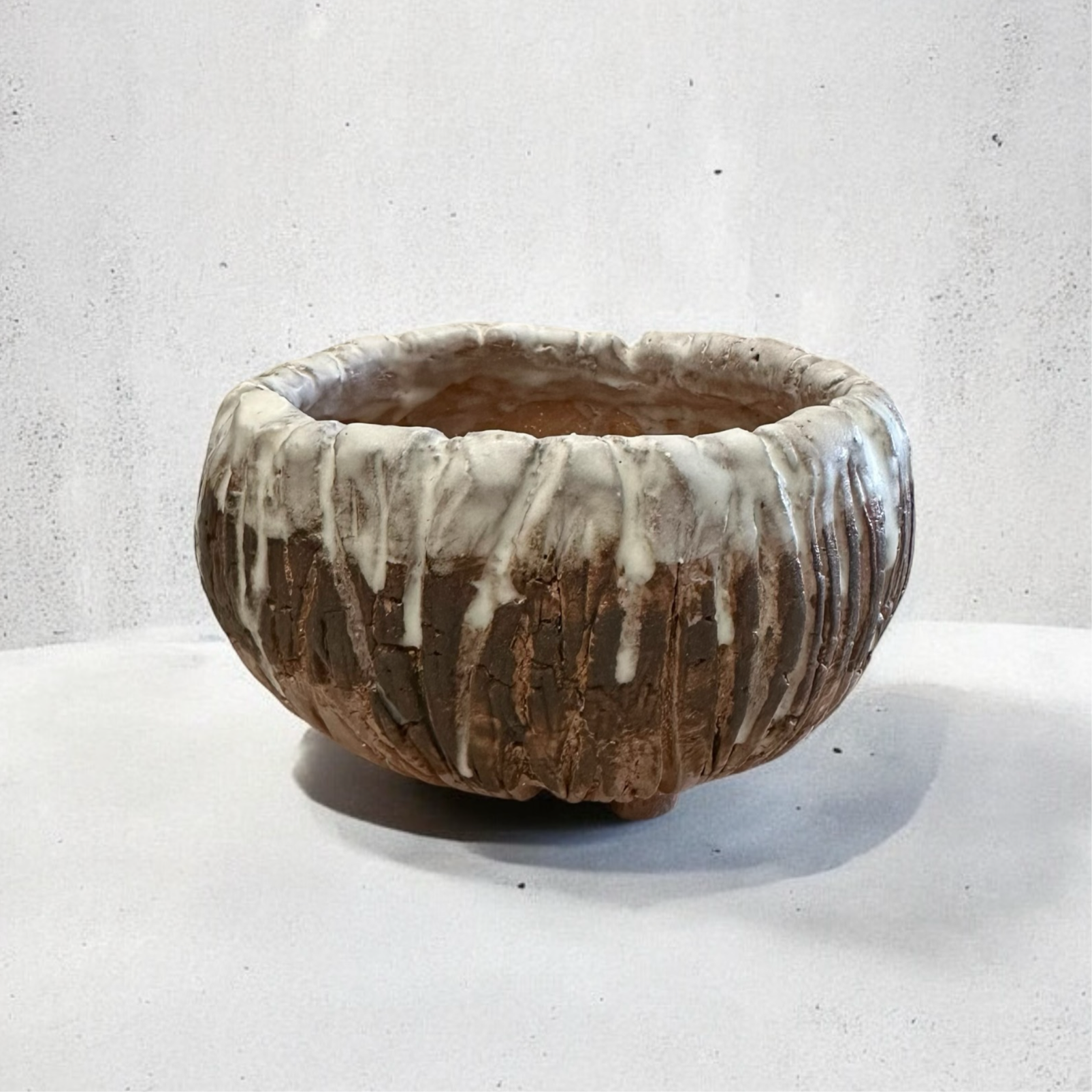 原始自然的紋理為靈感,外表覆蓋手工滴釉,猶如山巒間的白雪融流。它的設計質樸而細膩,將陶土的溫暖與工藝的靈魂完美融合,無論用於栽種或擺飾,皆能展現獨特的藝術氣息。