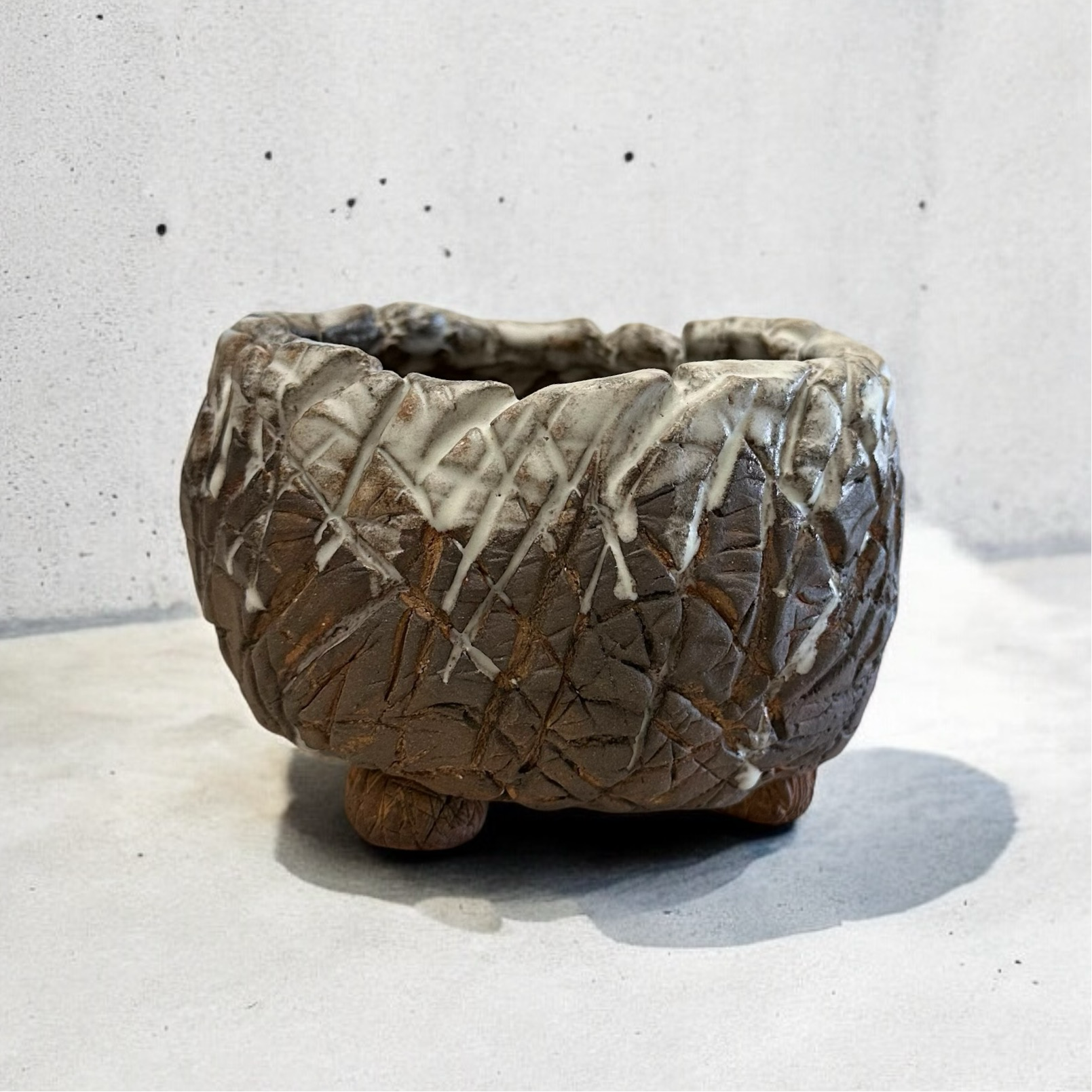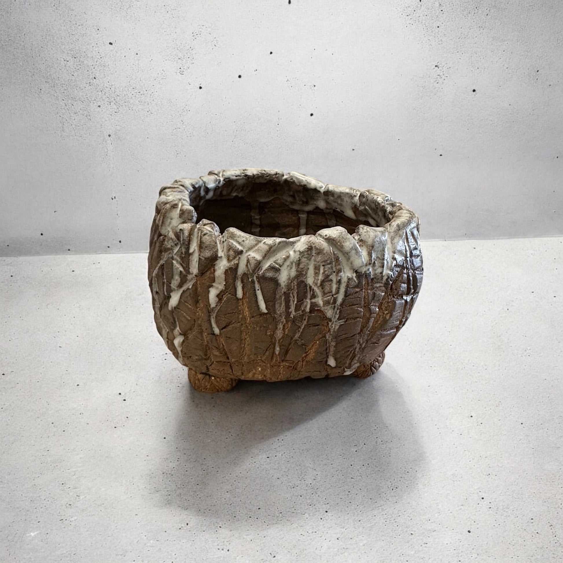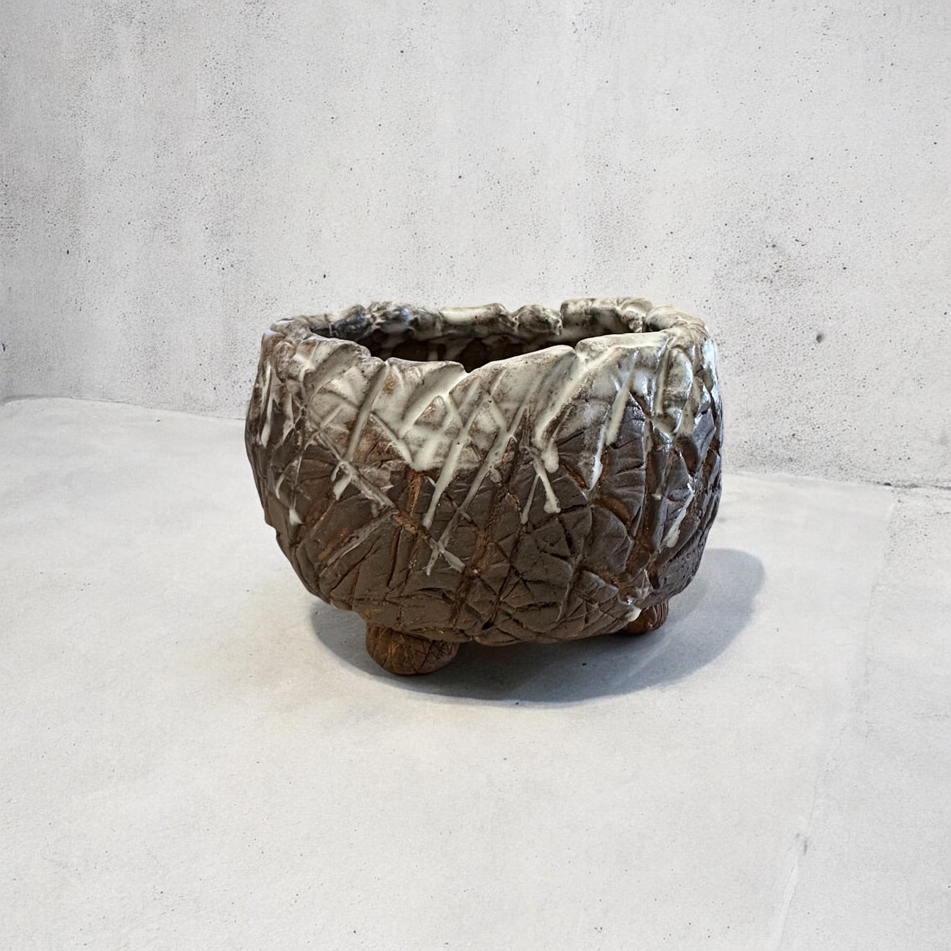 《台灣製》 《 好人製陶 》 白褐融雪 盆器二