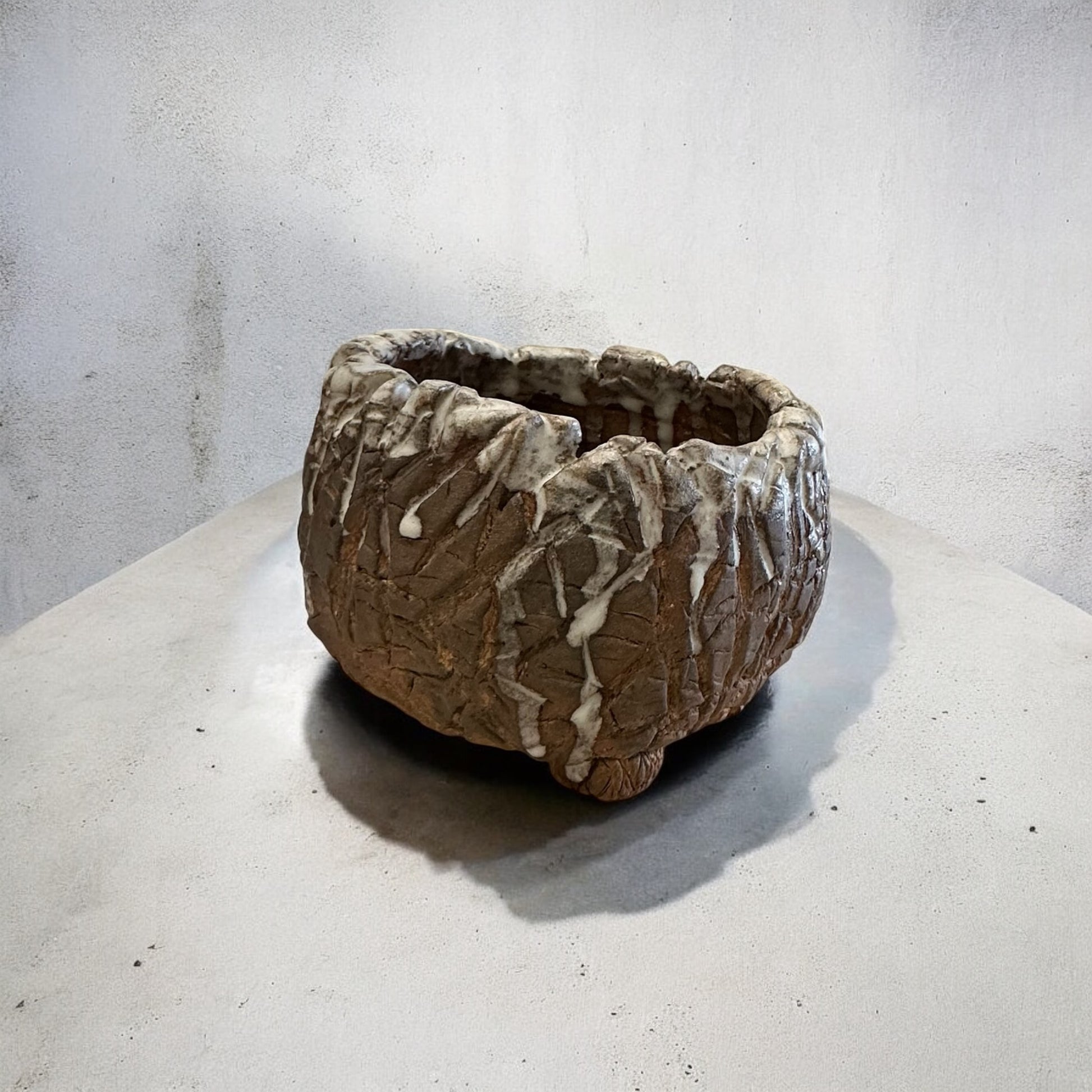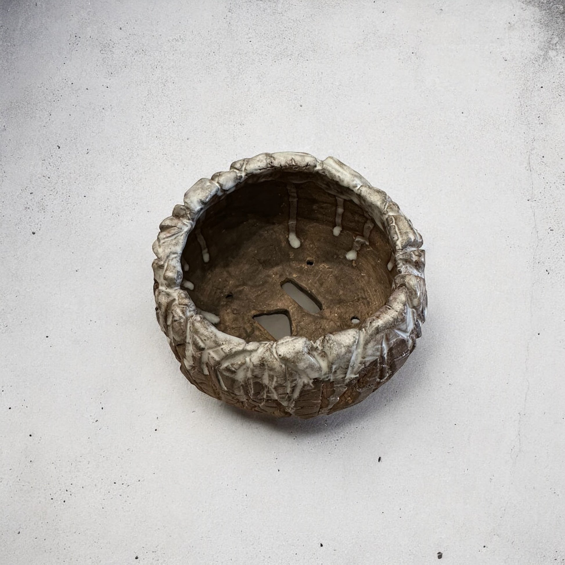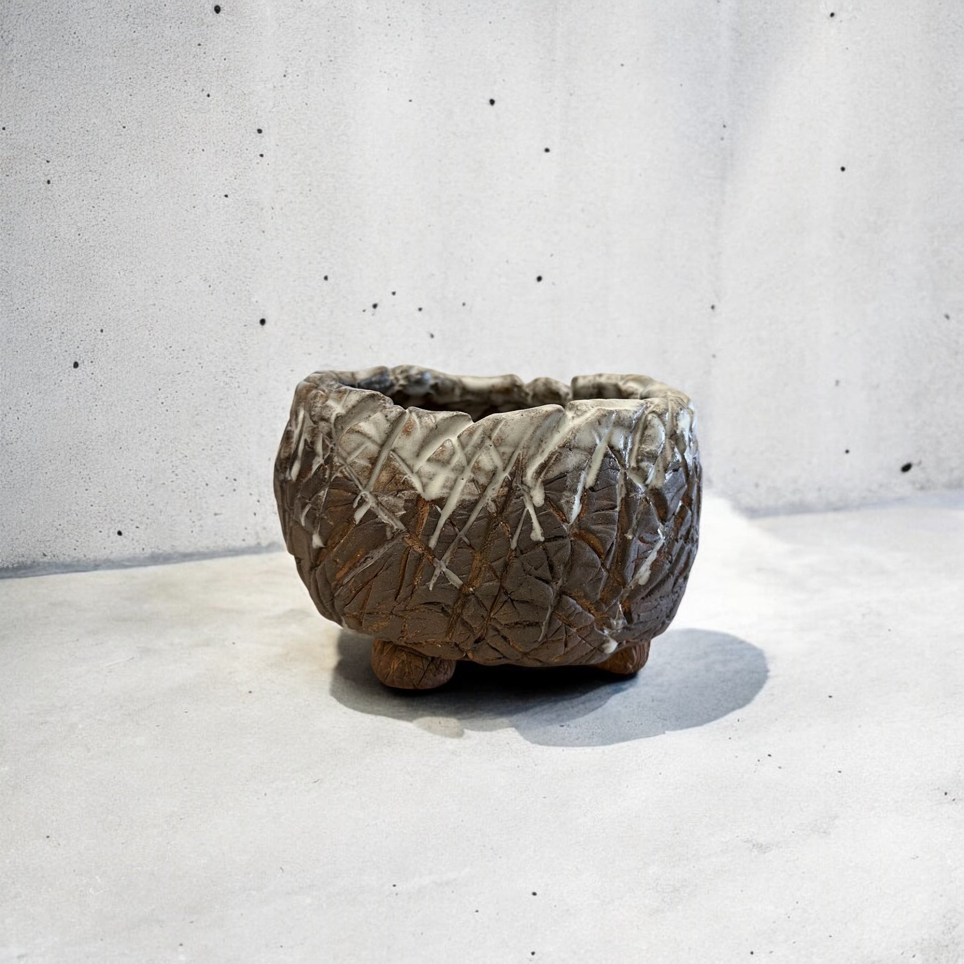 《台灣製》 《 好人製陶 》 白褐融雪 盆器二