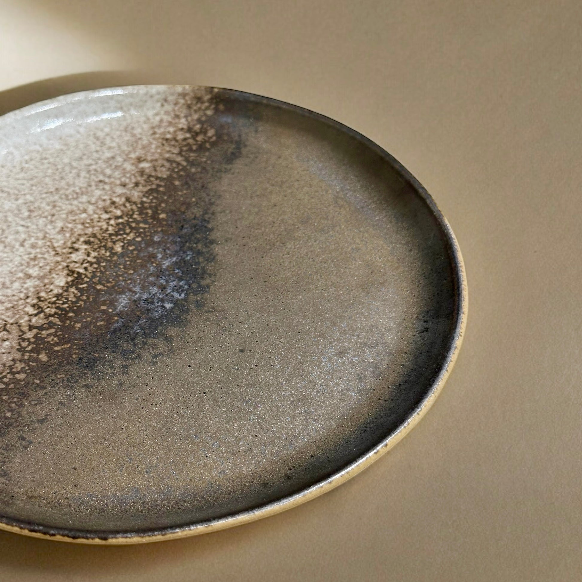 《 吉時雨陶藝 》手工陶盤 霧棕咖